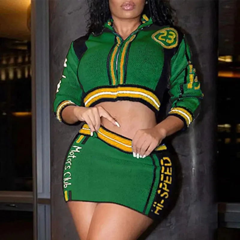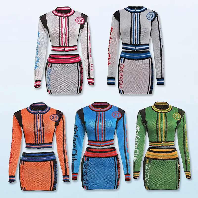 Huili Manufacturer Knitted Zip up Jacket Long Sleeve Crop Top & Mini Skirt 2026 Spring Custom Corset Two Piece Set Women